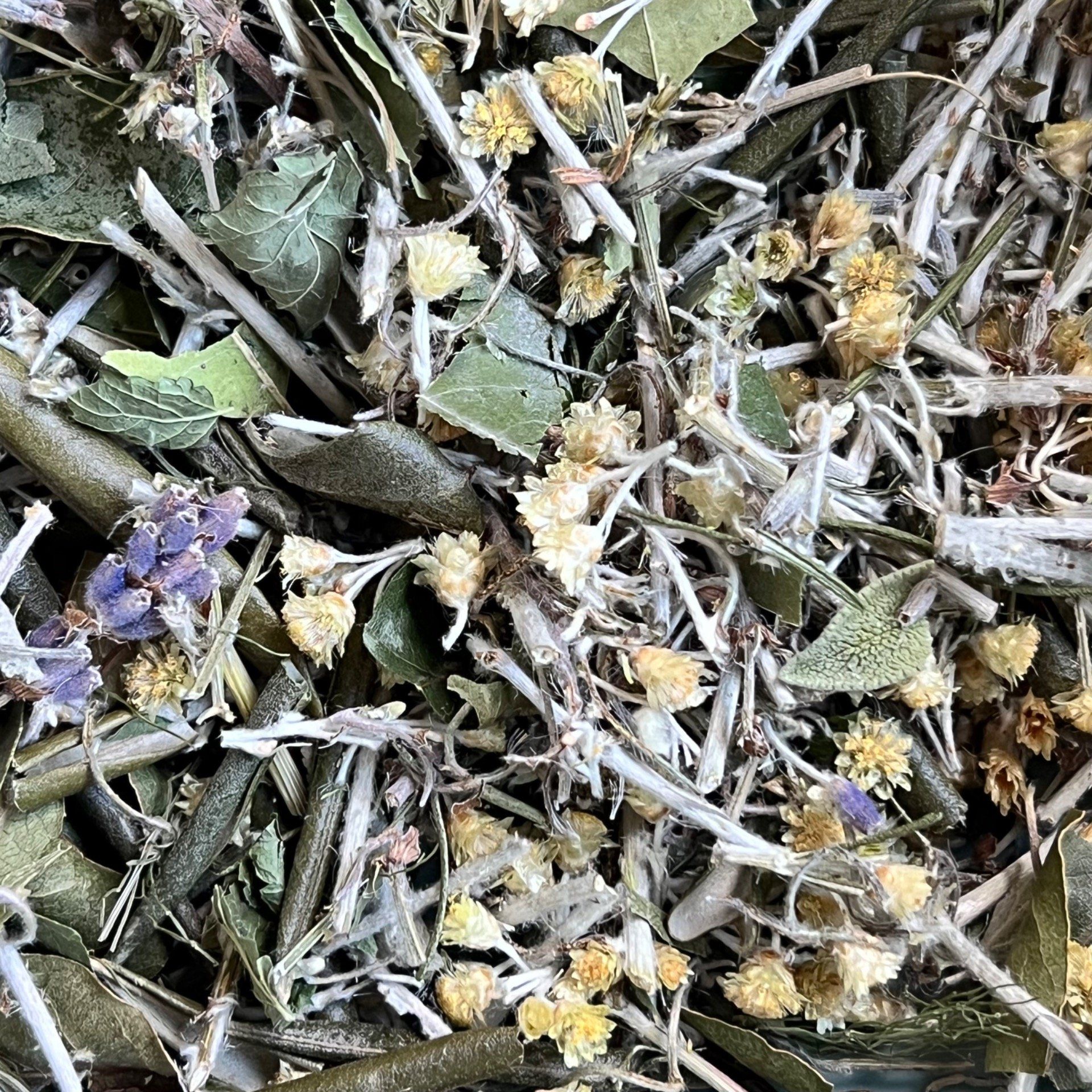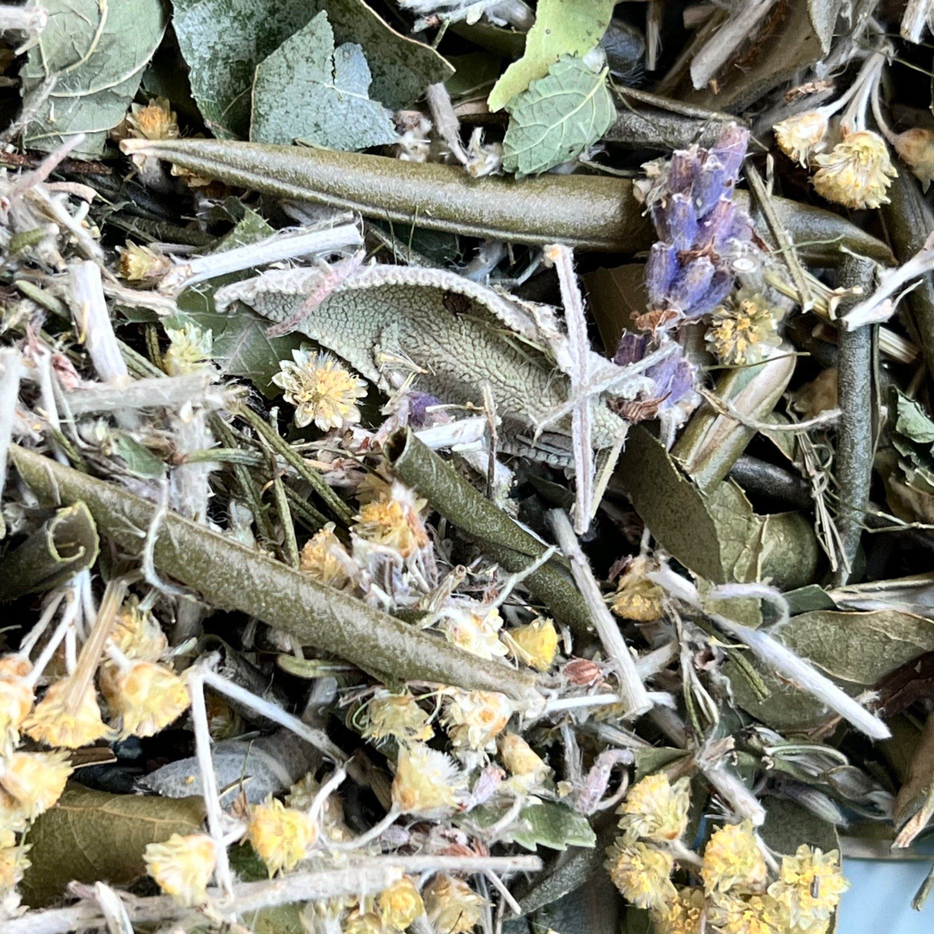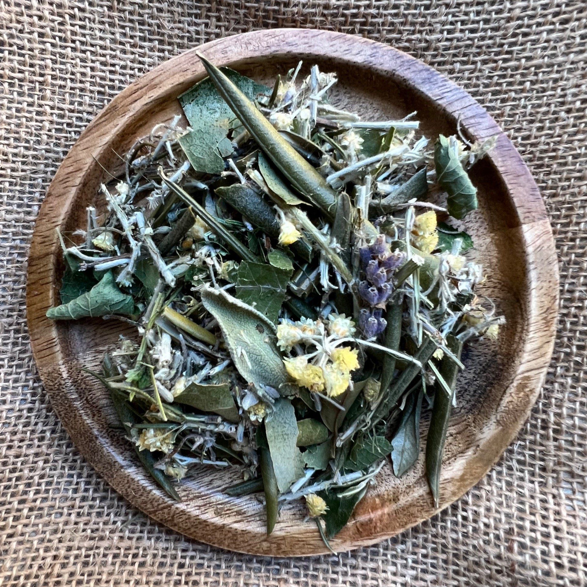 les racines et les ailes 🌿 Hélichryse · Lavande · Mélisse · Laurier noble · Arbousier · feuilles d’Olivier · Sauge officinale · Fenouil doux · Romarin