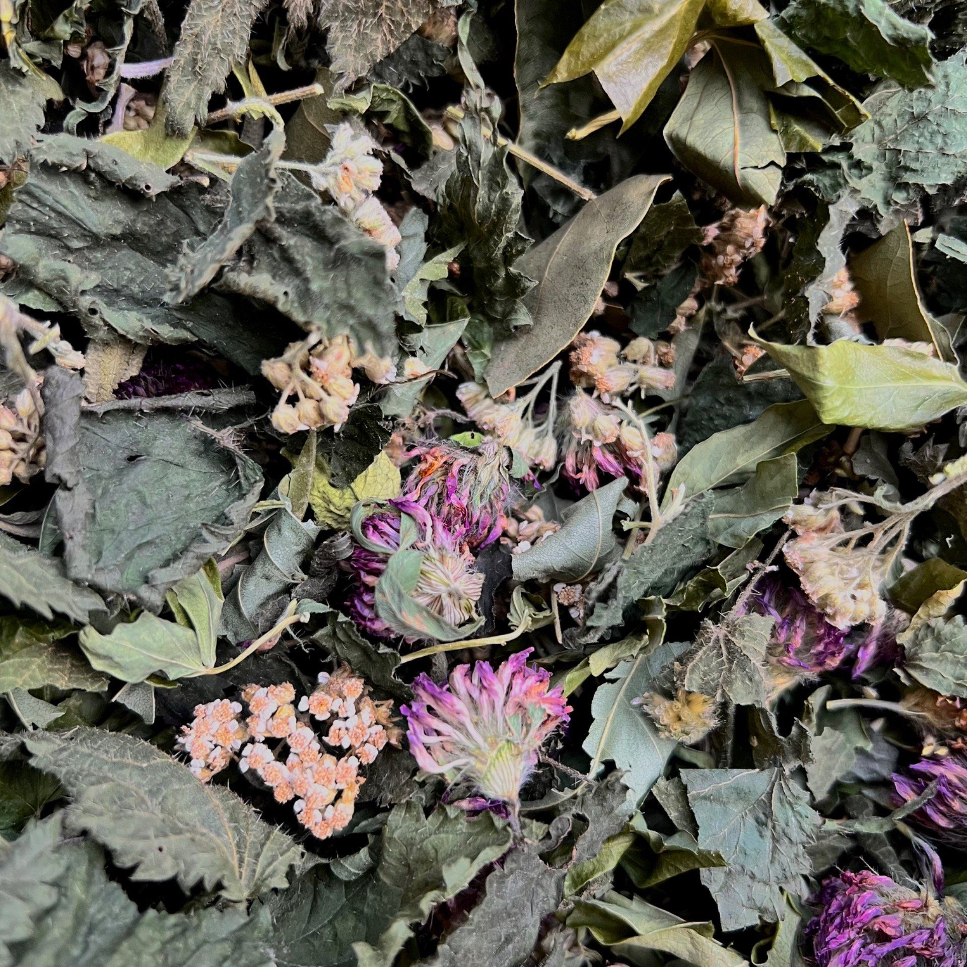 les liens du coeur 🌿 Ortie · Frêne · Laurier · Olivier · Sauge · Achillée · Passiflore · fleurs de Trèfle rouge