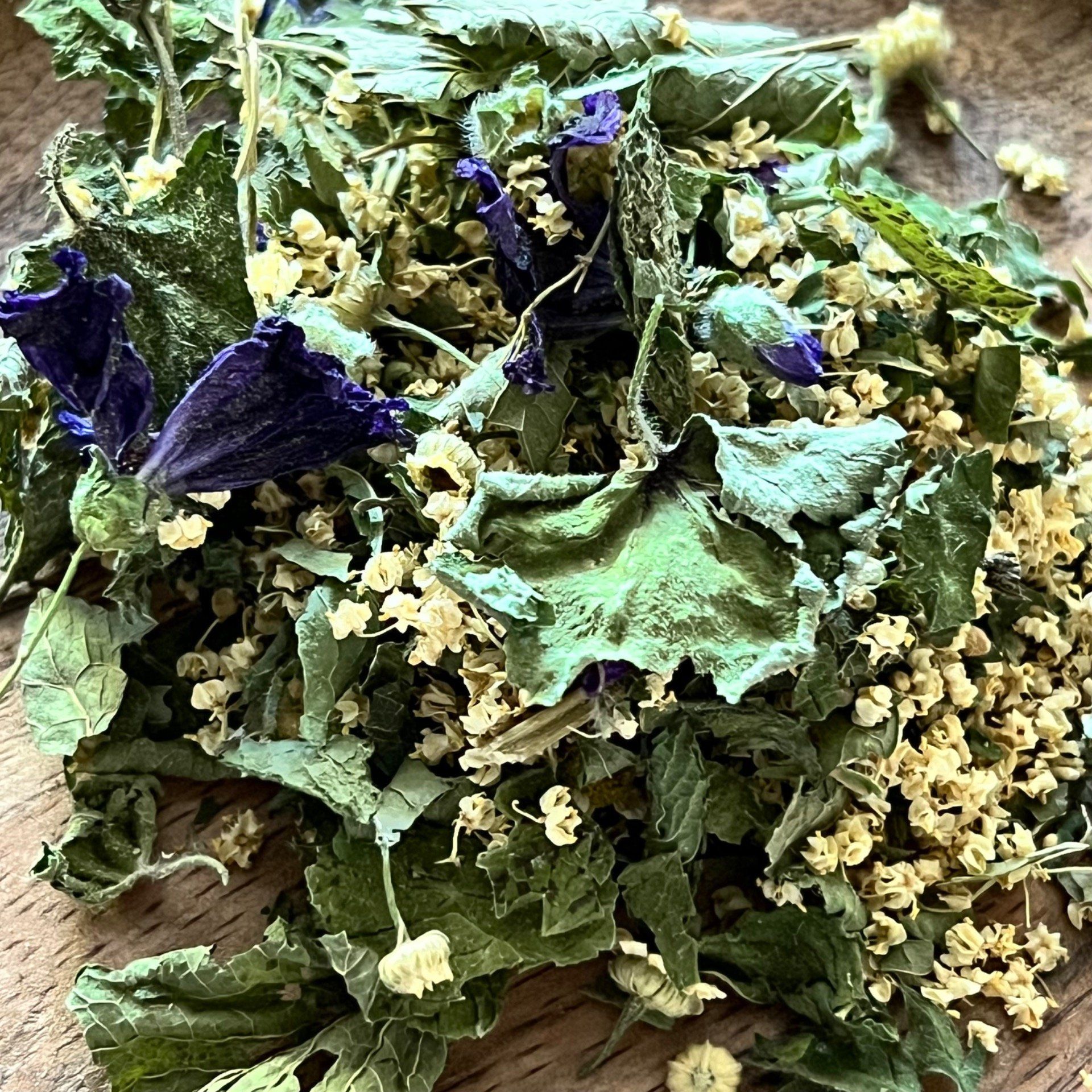 l'ode à la joie 🌿 Menthe · Camomille · Mauve · Sureau · Mélisse · Ortie