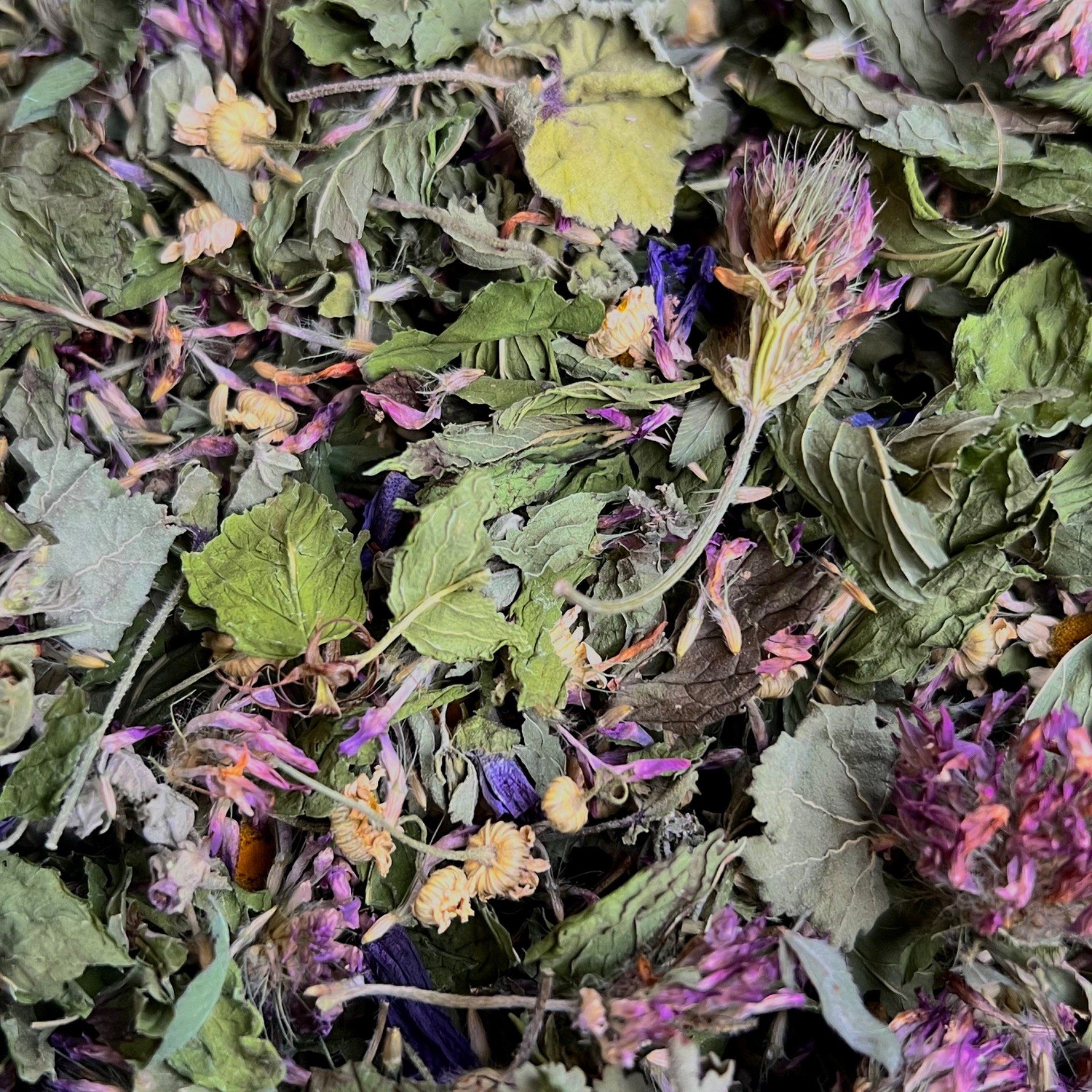 🌿 Menthe verte · Camomille · Mauve · Fleur de trèfle rouge